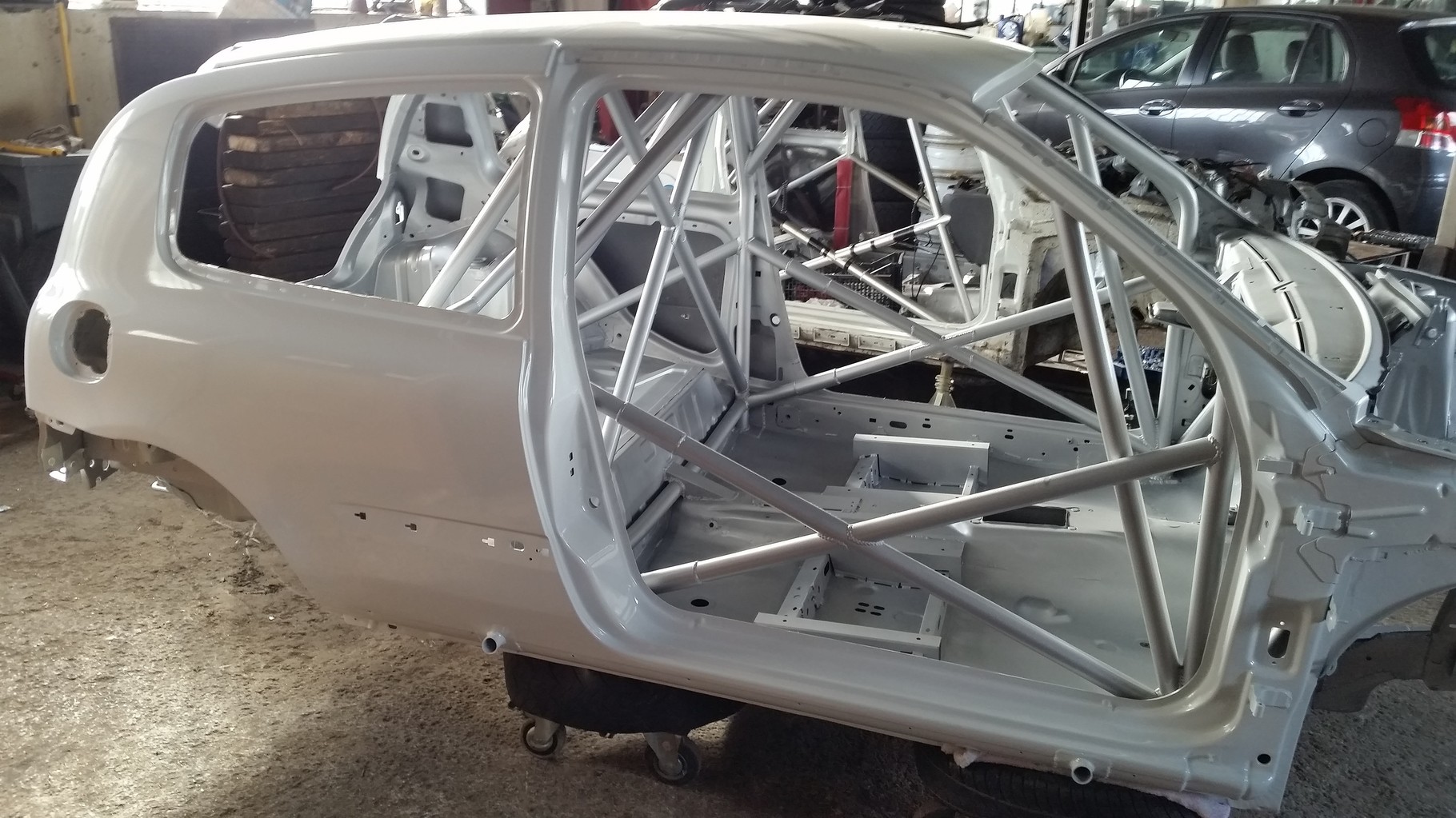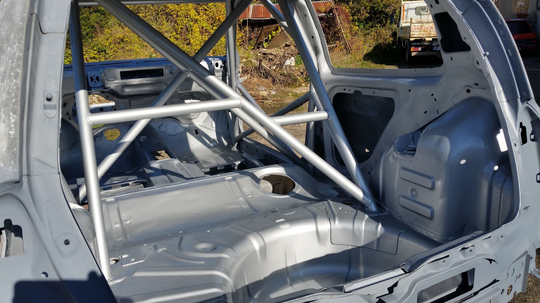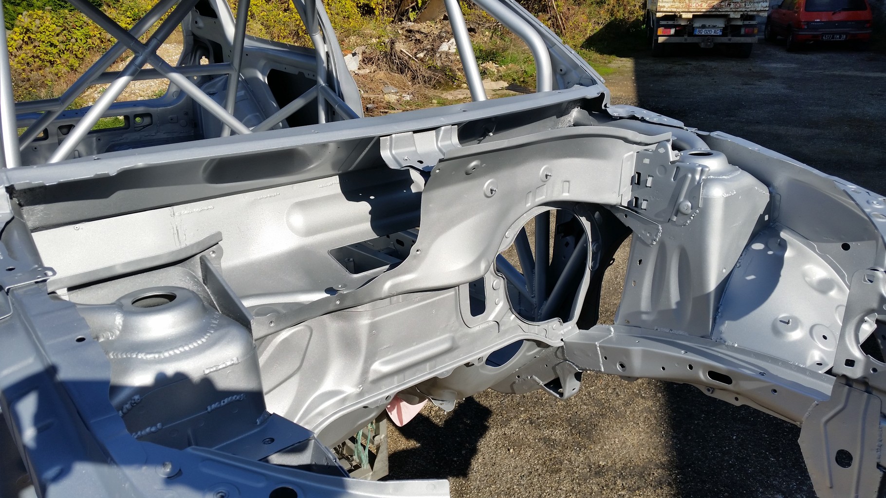 De plus nous avons terminé notre caisse neuve de Clio, elle est donc soudée, arceautée, et peinte. Elle servira si besoin cette année, et nous permettra de réparer très vite en cas d'une sortie de route importante.