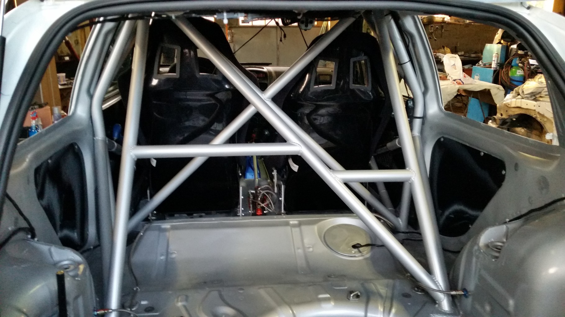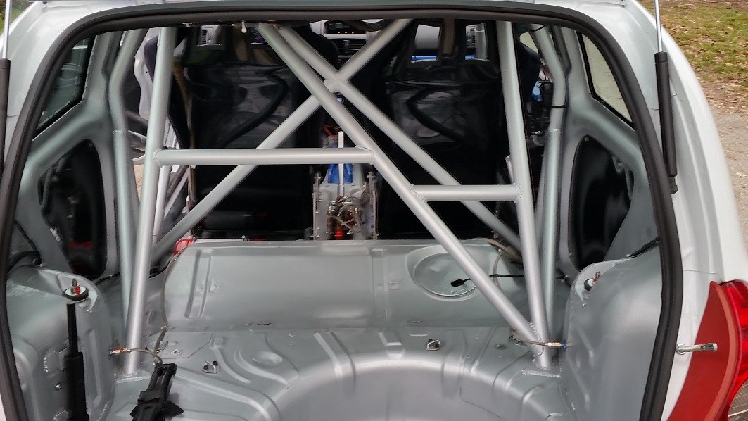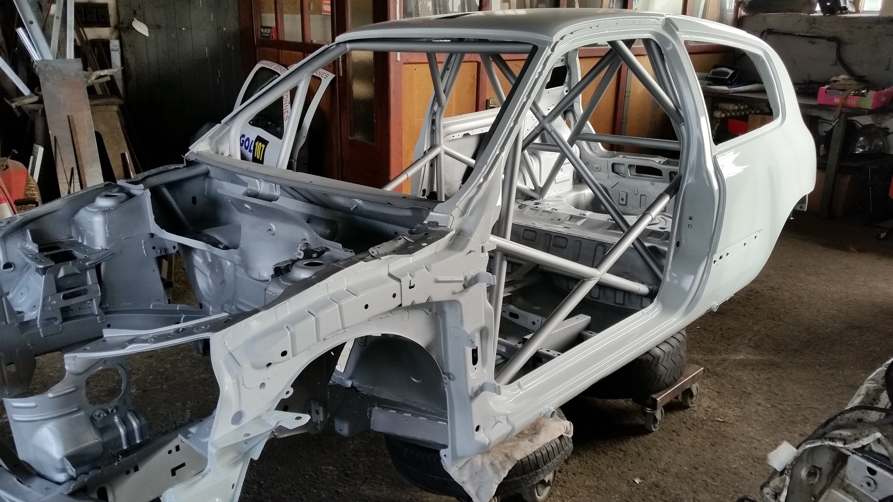 De plus nous avons terminé notre caisse neuve de Clio, elle est donc soudée, arceautée, et peinte. Elle servira si besoin cette année, et nous permettra de réparer très vite en cas d'une sortie de route importante.