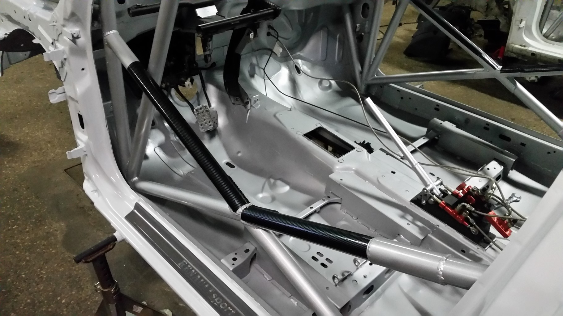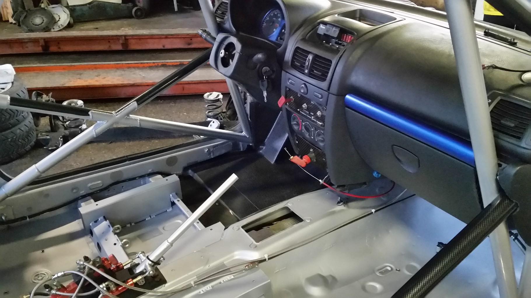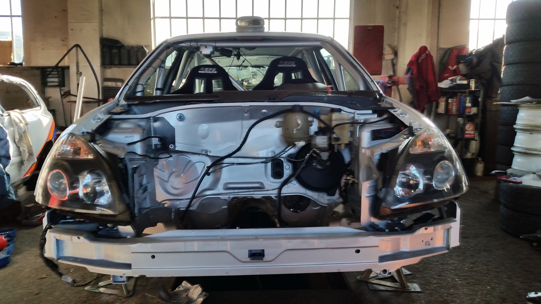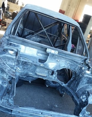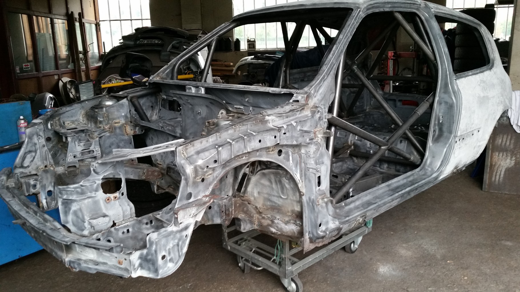 Nous travaillons sur la fabrication d'une caisse neuve. Nous sommes partis d'une caisse de série que nous avons passés au four pour la déblaxonner entièrement, et nous avons achetés le gros arceau Matter, ainsi que tous leur kit disponible. Celle-ci servira si un jour, nous devons faire un changement de caisse rapide suite à une sortie. En espérant bien sur, ne pas en avoir besoin.
