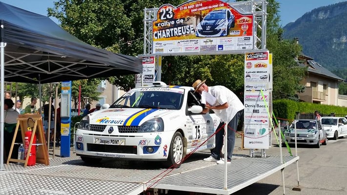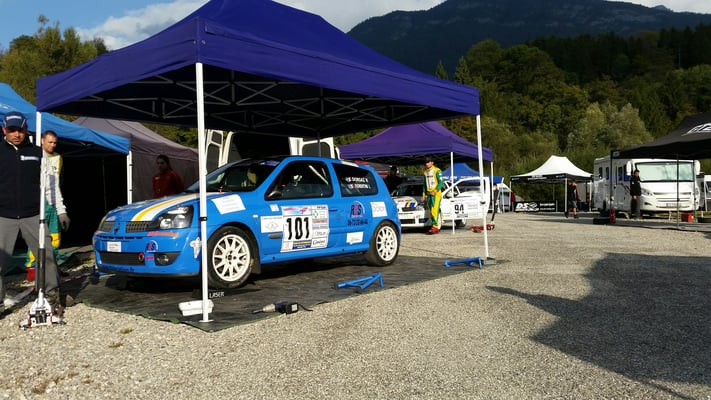 Notre nouvelle voiture fût terminée début Août et nous avons pu la faire débuter sur le rallye à la maison de l'année : le rallye de Chartreuse, ou toute la structure était de sortie. La nouvelle Clio était donc présente en voiture ouvreuse 0, ou nous avons pu valider tout notre travail de remontage sans pression. Notre Ragnotti blanche était elle présente dans les mains de nos clients habituels Max Python-Curt et Clément Périno, malheureusement ils n'iront pas au bout de ce rallye, stoppé par une faute de jeunesse et manque d'expérience, une touchette le dimanche matin dans un arbre pas très grave, mais la Clio étant trop blessé pour repartir. La Ragnotti bleue était dans les mains d'amis de longue date Flavien Loridon/ Florent Montagnat qui reprenaient du service après 3 ans sans rallye. Le temps ne détruit pas le talent ( Mr Loeb l'a encore prouvé au rallye de Catalogne). Auteur d'un superbe rallye, avec une 17ème place au général et 2ème de classe, malheureusement le rallye s'arrête à 2kms de la ligne d'arrivée sur 1 seconde de déconcentration, et c'est un sur-régime qui les arrêtent net. Bilan plutôt moyen pour notre rallye à domicile.