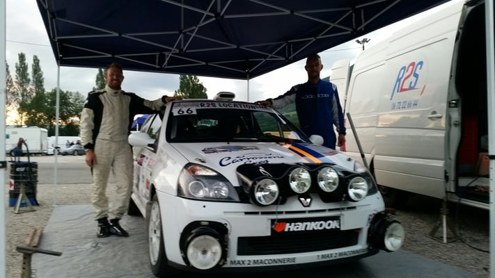 Pour attaquer nous étions au rallye des vignes de Régnié avec 2 voitures. La Clio Ragnotti blanche conduite par la famille Dumoulin père et fille étaient au départ. Leur but se faire plaisir pour leur 1er rallye ensemble et après plus de 10ans sans courir pour Franck au volant. Mission accomplie pour cette équipage fort sympathique qui va essayer de renouveler l'expérience une autre fois cette saison. La Clio grise était elle aussi alignée avec Christophe Barthomeuf et Audrey Chavasse qui étaient venu pour trouver des sensations dans une nouvelle voiture pour eux et 3 ans sans rouler ensemble. Mission la aussi accomplie et de bonne augure pour le programme qui les attends avec nous cette année.