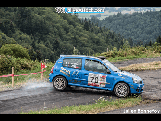 Une semaine après le rallye de Chartreuse fin Août, nous avons attaqué le mois de Septembre du côté de la Haute-Loire pour le rallye régional du Velay-Auvergne. Nous nous sommes déplacé pour un jeune équipage local, composé de Silvio Cammarota et Arnaud Trioulaire. Nous leurs avions mis à disposition la Clio bleue, et comme à son habitude elle a ravie nos clients. Après un départ plutôt prudent après un dernier rallye qui s'était terminé sur le toit pour Silvio, notre équipage remonte le classement pour ajouter un nouveau podium de classe à notre Clio. Bravo à eux et leur intelligente gestion de course qui les emmène à la 3ème place de la classe N3.